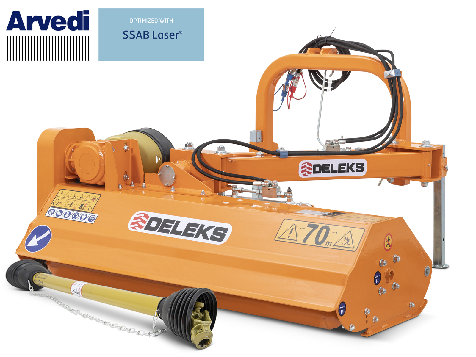 CLOSEOffset Verge Flail Mower for Tractors, 120cm / 180kg, +88° / -60° - DELEKS® VOLPE-120 - Internal Gearbox - Pto shaft CE included.