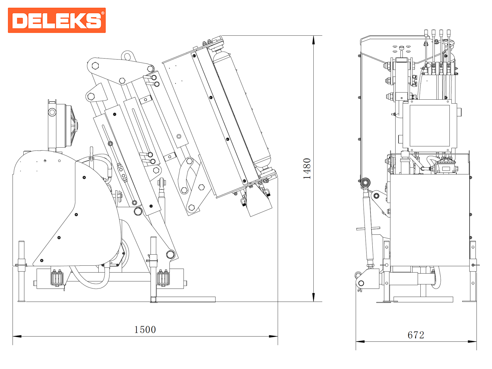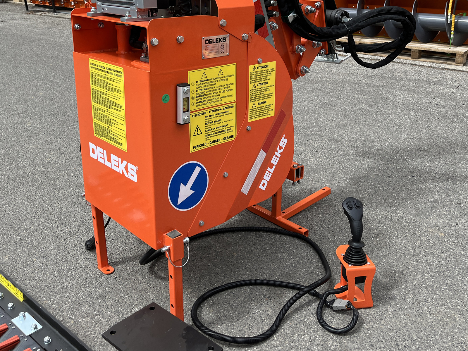 CLOSEHedgecutter for tractor, multiple hedge and grass verge rear arm cutter - DELEKS® MERLO, own hydraulic system, runs completely off the PTO - Pto pump included - Joystick - can mount a cutting head with 80-100-110cm working width, or a 130-160 or 180cm hedge trimmer bar.