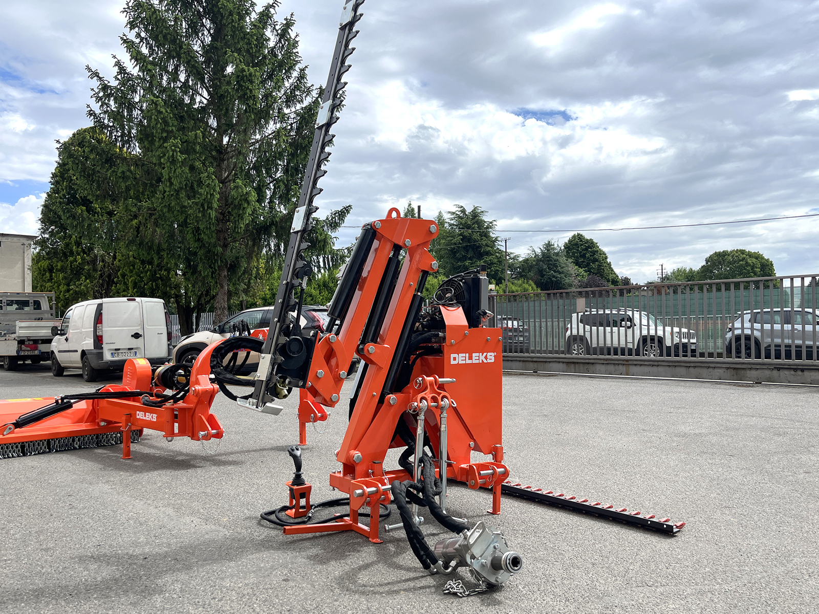Hedgecutter for tractor, multiple hedge and grass verge rear arm cutter - DELEKS® MERLO, own hydraulic system, runs completely off the PTO - Pto pump included - Joystick - can mount a cutting head with 80-100-110cm working width, or a 130-160 or 180cm hedge trimmer bar.