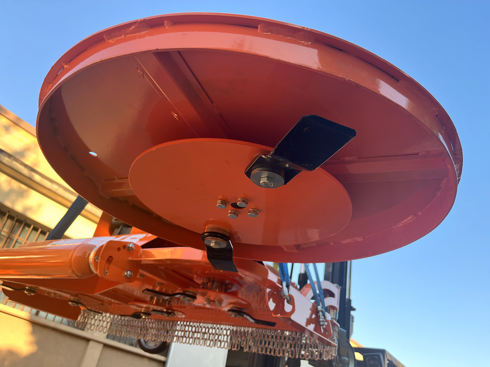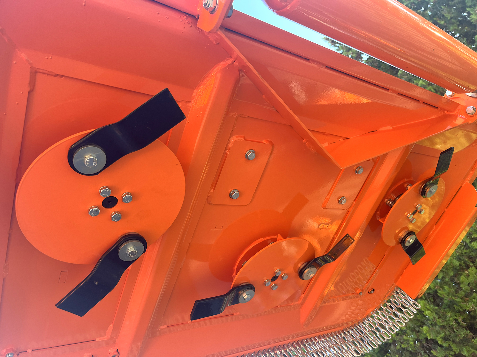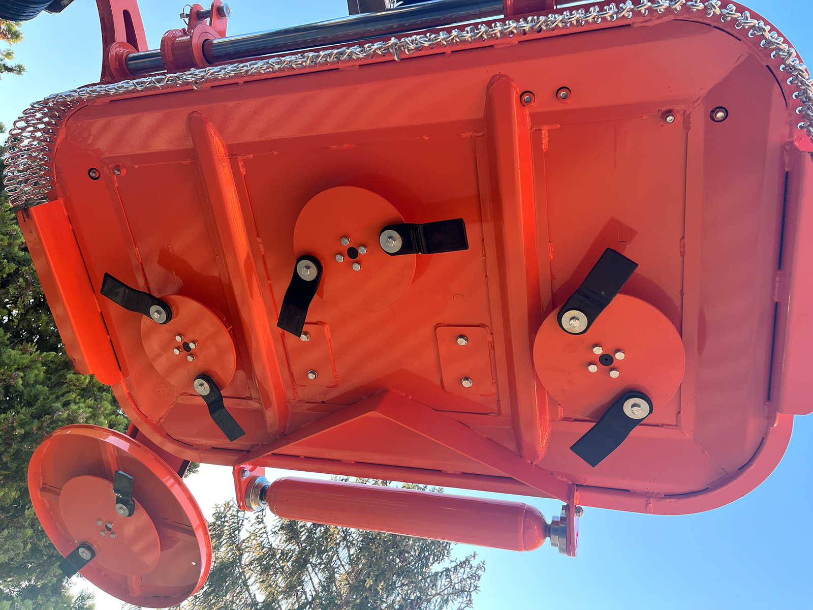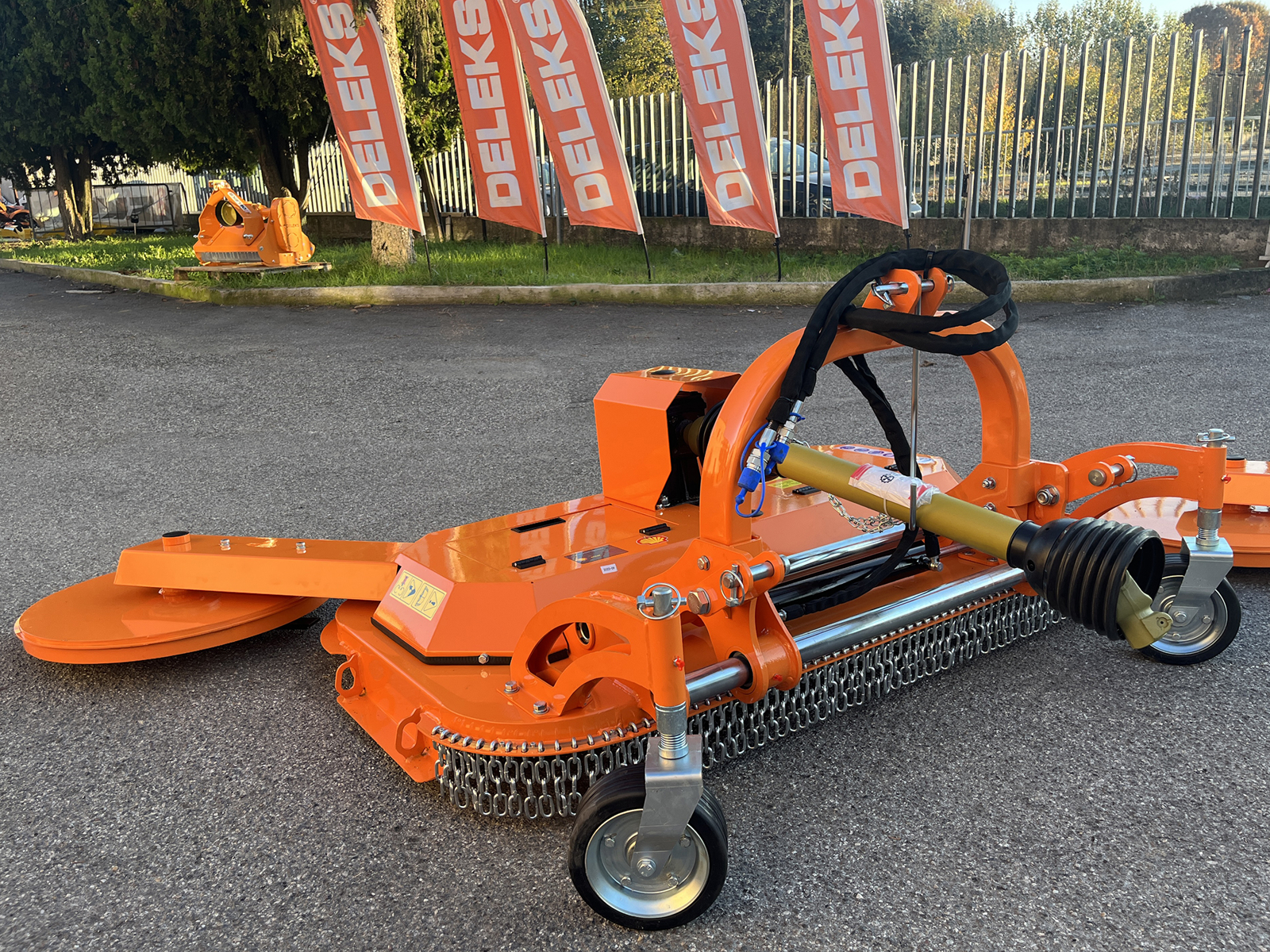 CLOSEDELEKS® DM150-INTERFILA Finishing mower for tractor, 8 blades, hydraulic side shift and 60cm inter-row disc, Cardan shaft with Free wheel integrated.