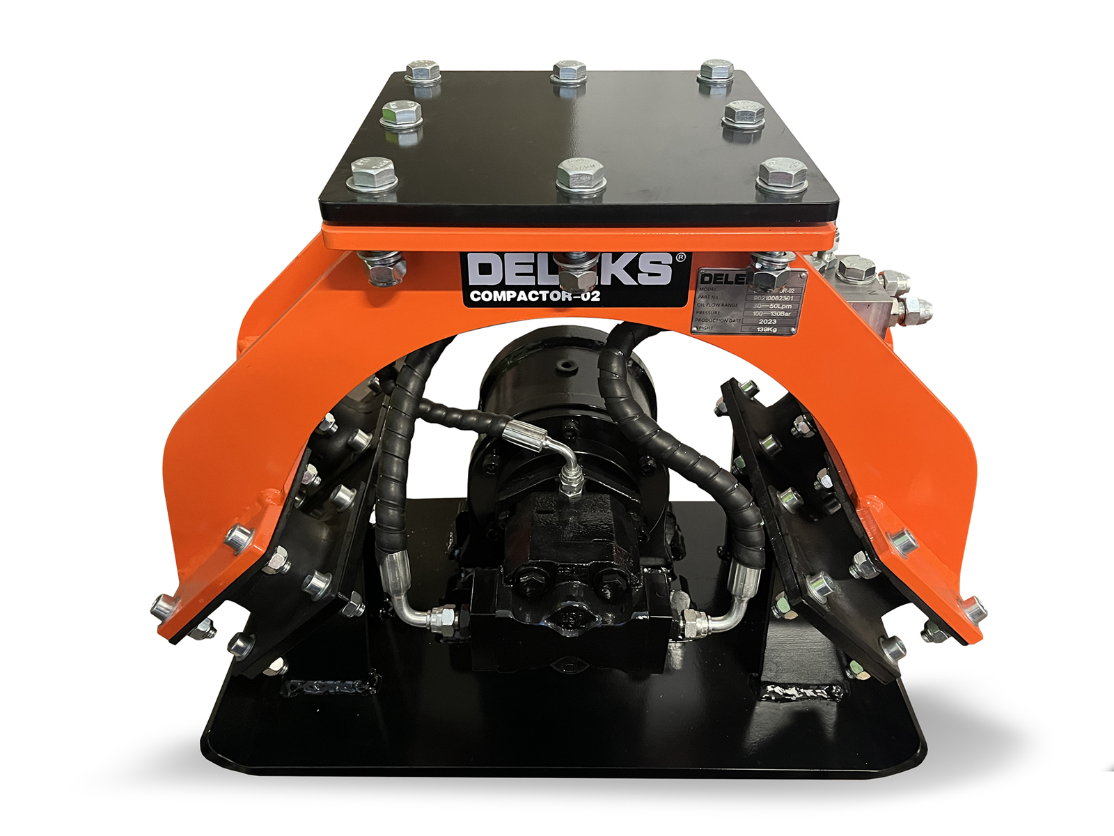 DELEKS® COMPACTOR-02 vibrating plate compactor. It is very easy to instal and easy to use, and it’s suitable for both a skidsteer or a mini excavator, from 1.0 t to 2.5 t.