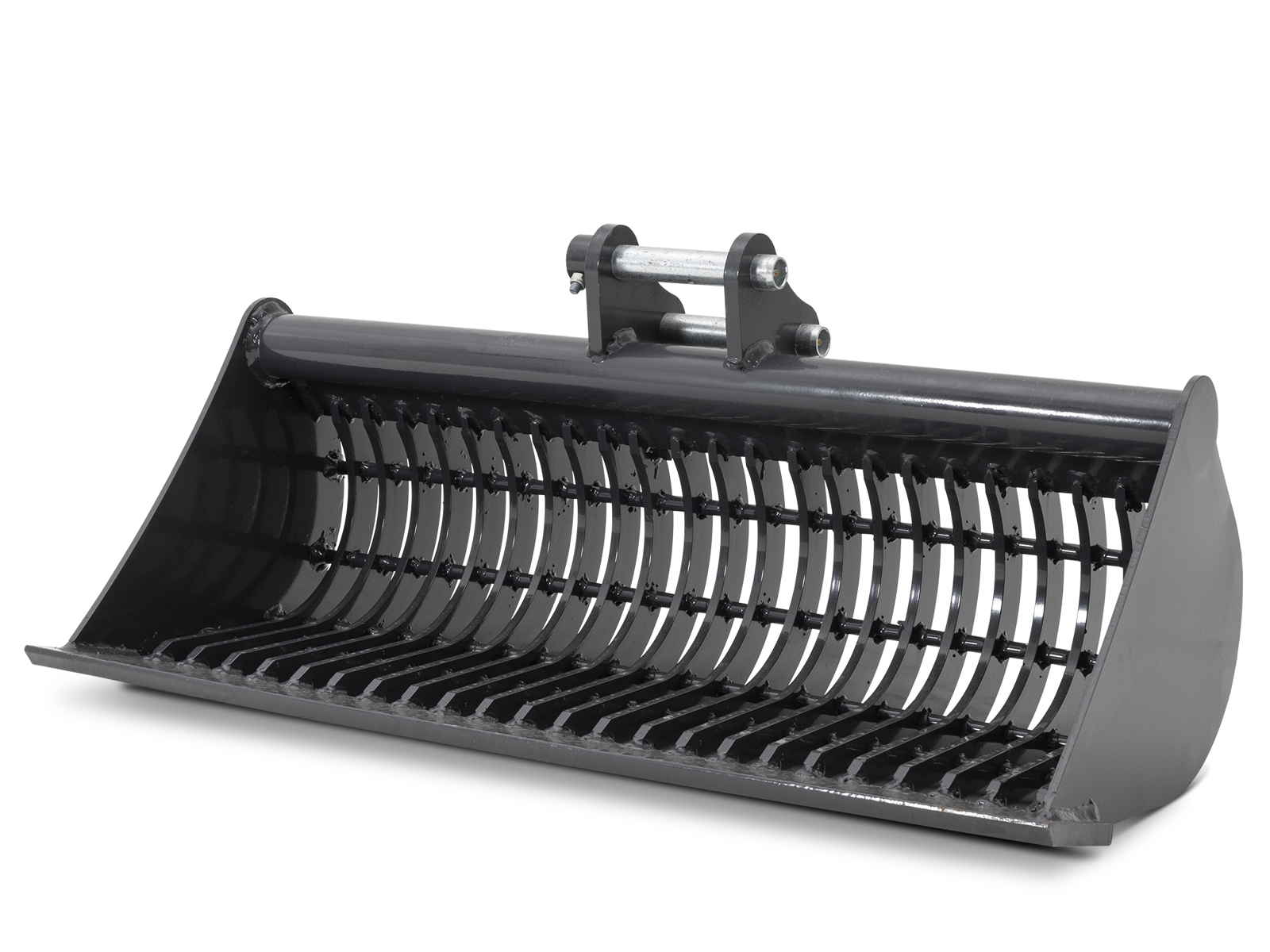 Cazo rastrillo, cazo para piedra, para miniexcavadoras DELEKS® S100 y KUBOTA S100, K008-3, U10-3, K008-5, U10-5. Se utiliza principalmente para el dragado de cursos de agua, la selección de residuos de construcción durante los trabajos de demolición, preparar el suelo antes de la siembra o la preparación del paisaje, etc...