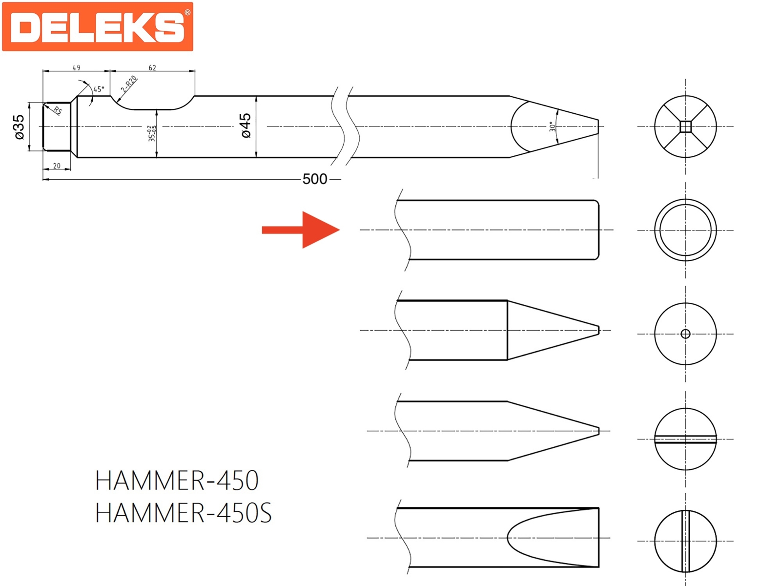 DELEKS® Blunt chisel for hydraulic hammer.