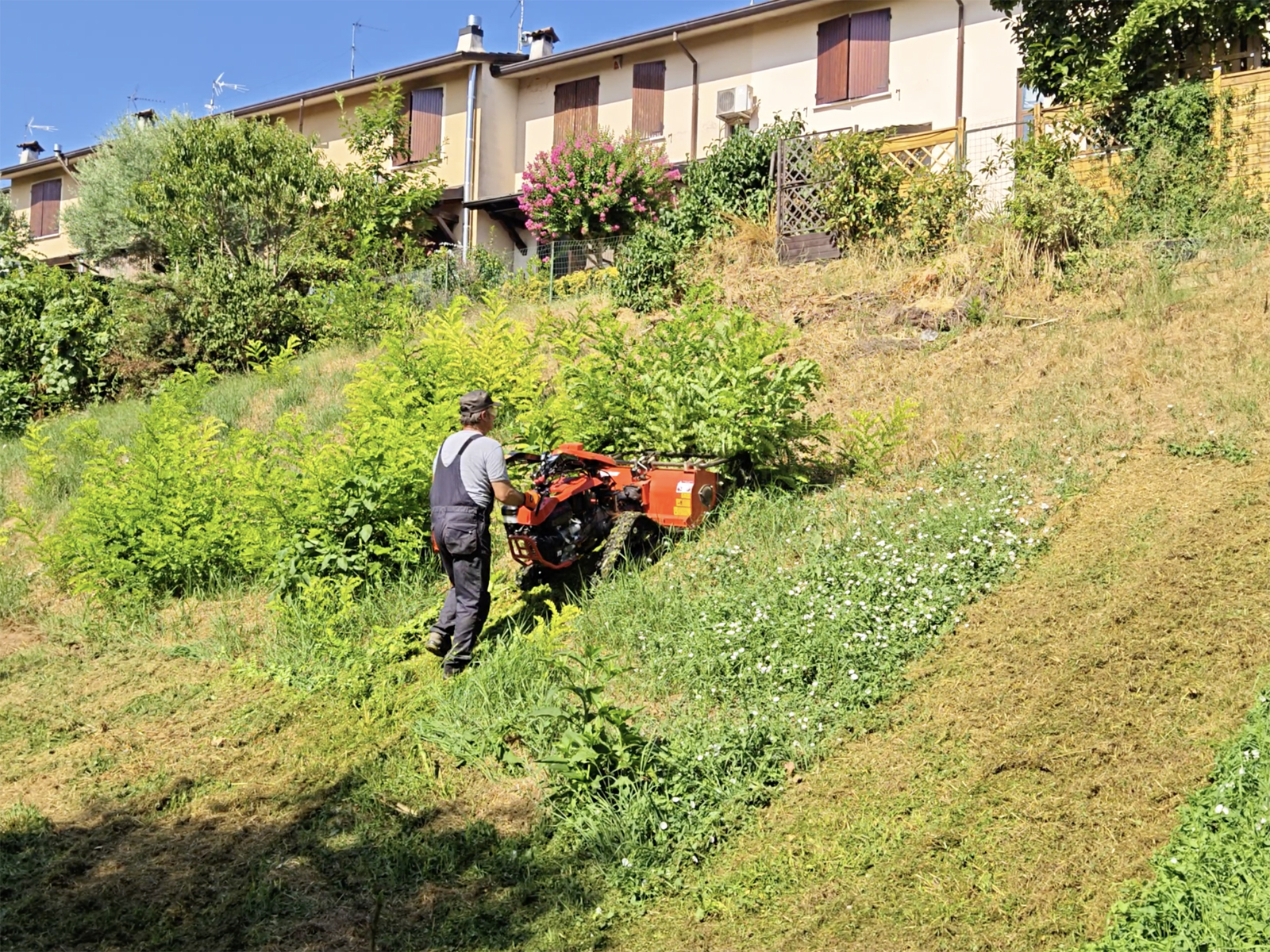 Mulching grass on slopes and uncultivated areas.