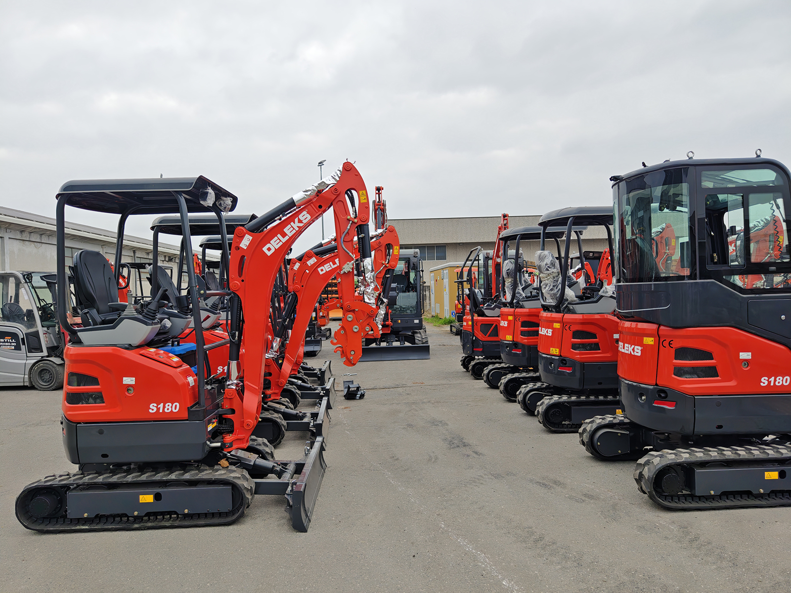CLOSEThe DELEKS® S180 zero-tail mini excavator is equipped with a Kubota D902 diesel engine (3-cylinder), a variable-displacement axial-piston hydraulic system (64.4 L/min), extendable undercarriage, swing boom, and two-speed travel. Designed for power, precision and professional-grade hydraulic control, it combines efficiency, low fuel consumption and smooth operation—ideal for construction, landscaping and urban maintenance, even in confined areas thanks to its zero-tail design.