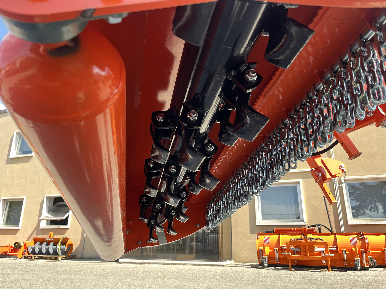 The GIRAFFA-170 multi-purpose mower is for home and professional use and is extremely popular among organic farmers to tackle rushes, brambles and hedges. The GIRAFFA cuts grass, but also shreds small twigs and branches 4-5cm thick making it ideal for docks, thistles and long, thick grass on roadsides. It can also be used for pruning and trimming bushes as it can be hydraulically angled vertically (90º) or down (65º) for riverbanks, verges and ditches. This mower is attached to the tractor using universal three point linkage and fits most 50-70hp tractors e.g Kubota, Ford, New Holland T3F, McCormick, John Deere 3, Ford, Lamborghini.
