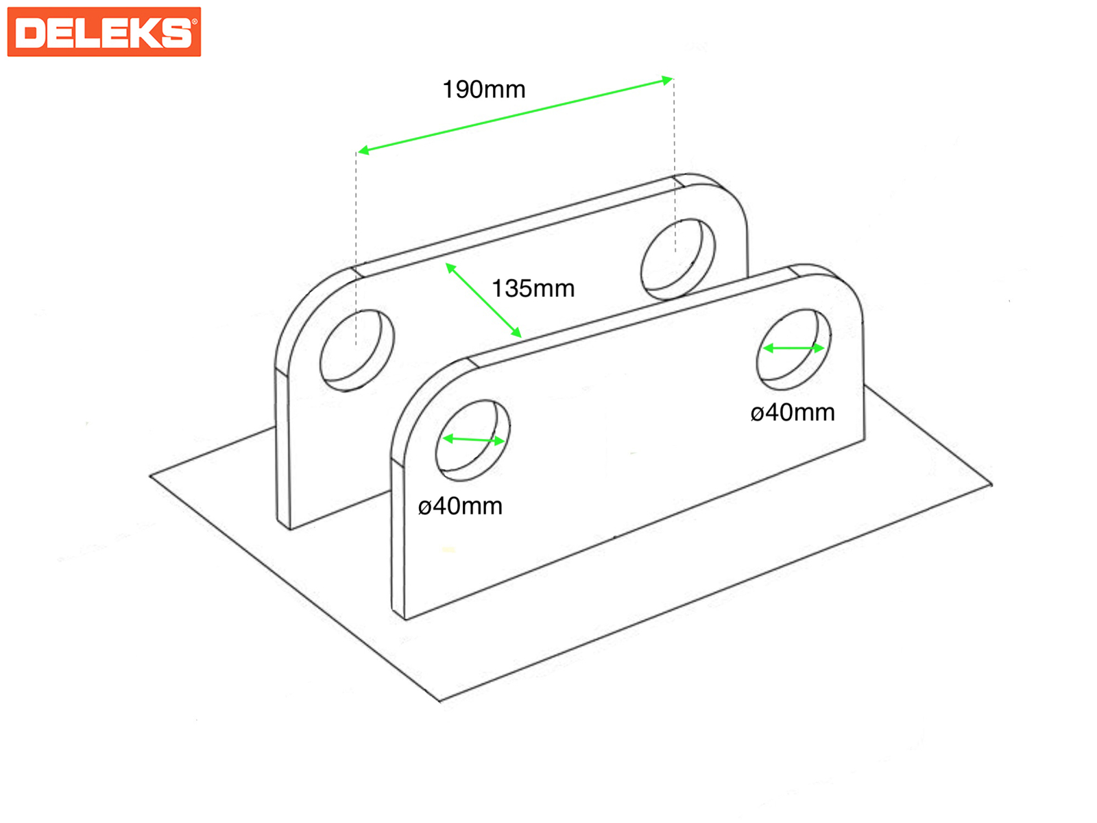 The bucket is fitted with 2 Ø40 mm pins with grease fittings, ensuring reliable attachment, reduced wear and smooth operation.