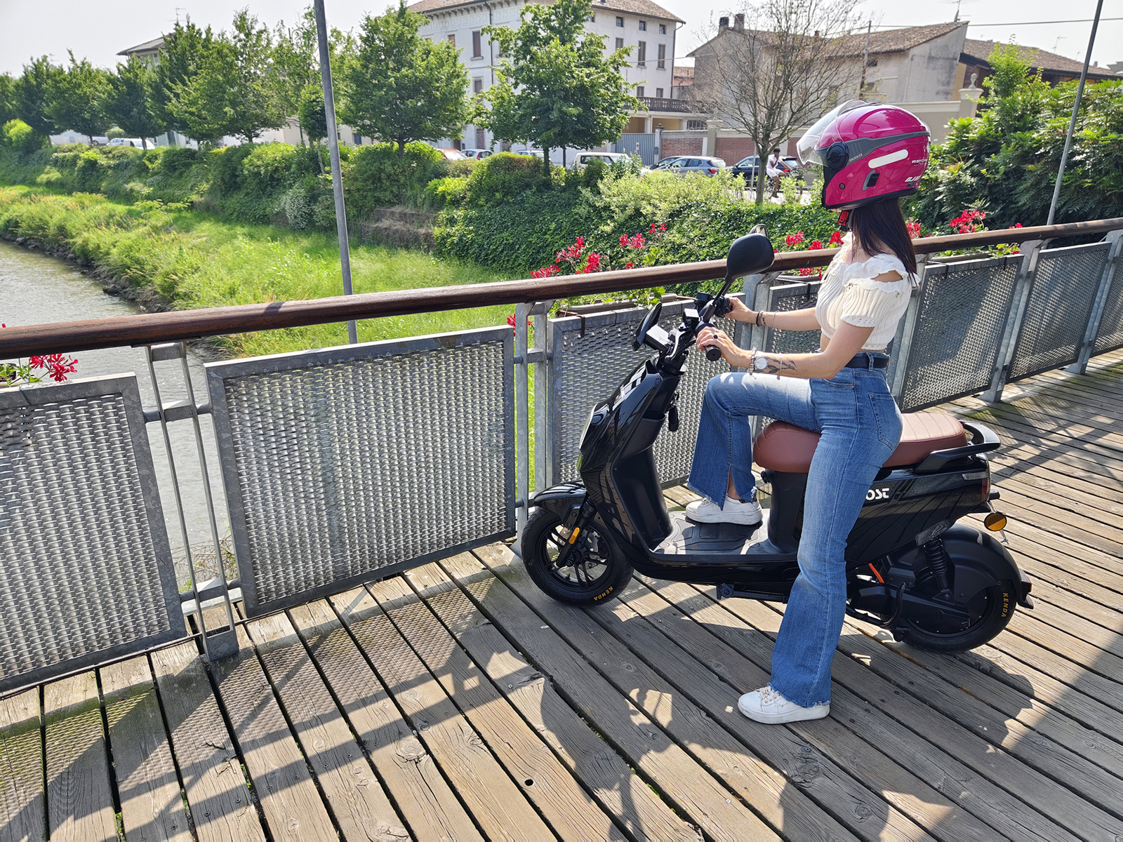 The E-BOOST is designed with sustainability and riding pleasure in mind. The minimalist and sporty design not only gives the scooter a sleek look, but also extra comfort while riding.
