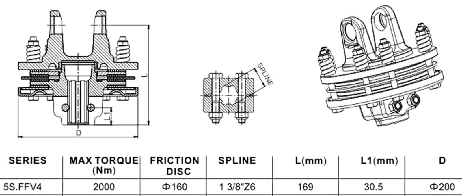 With adjustable Friction Torque Limiter ø 200 mm, 1600 Nm
