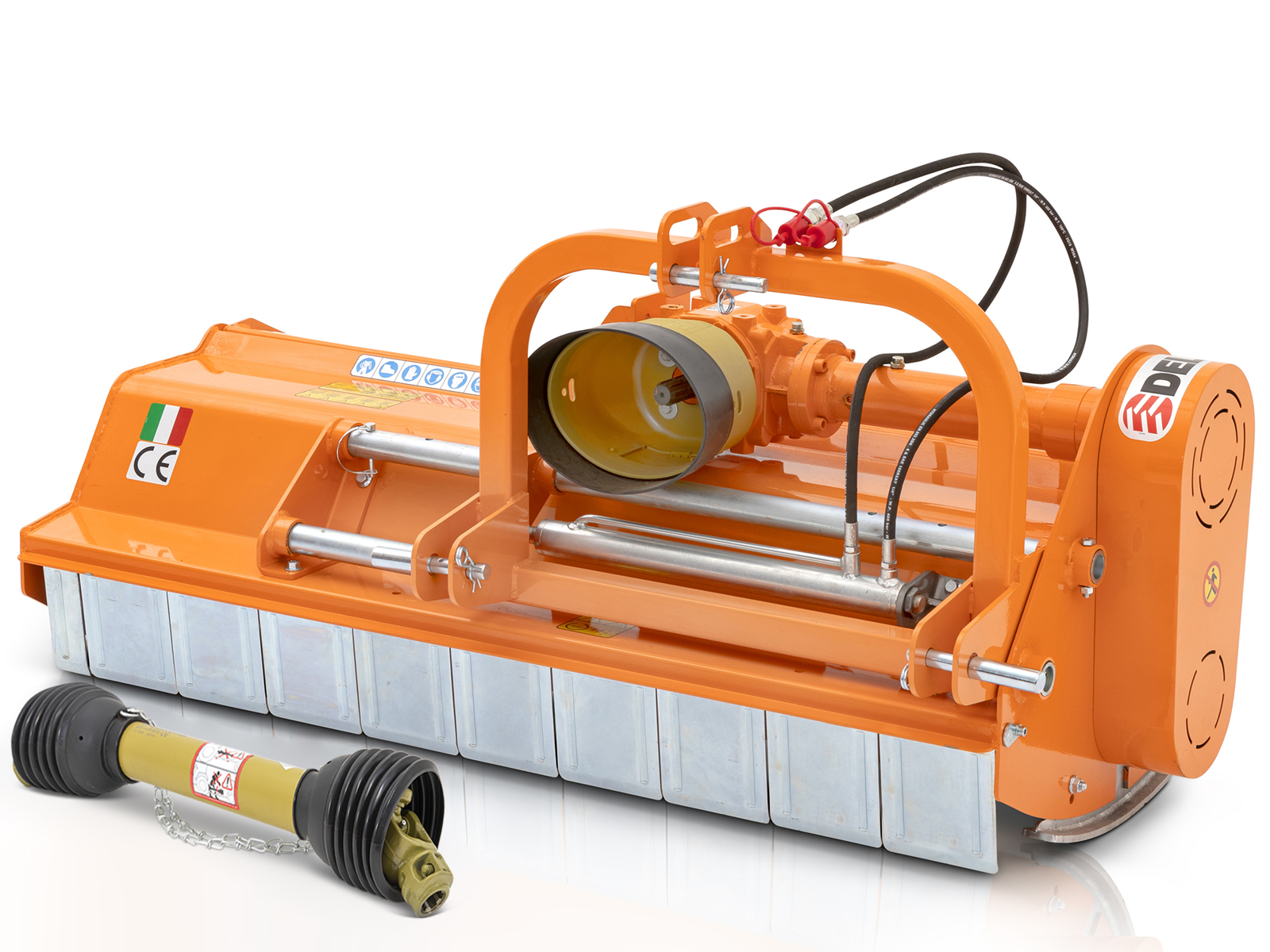Shredder with hammers for orchard, vineyard, olive grove and uncultivated areas. Professional Flail Mower with hydraulic side shift.