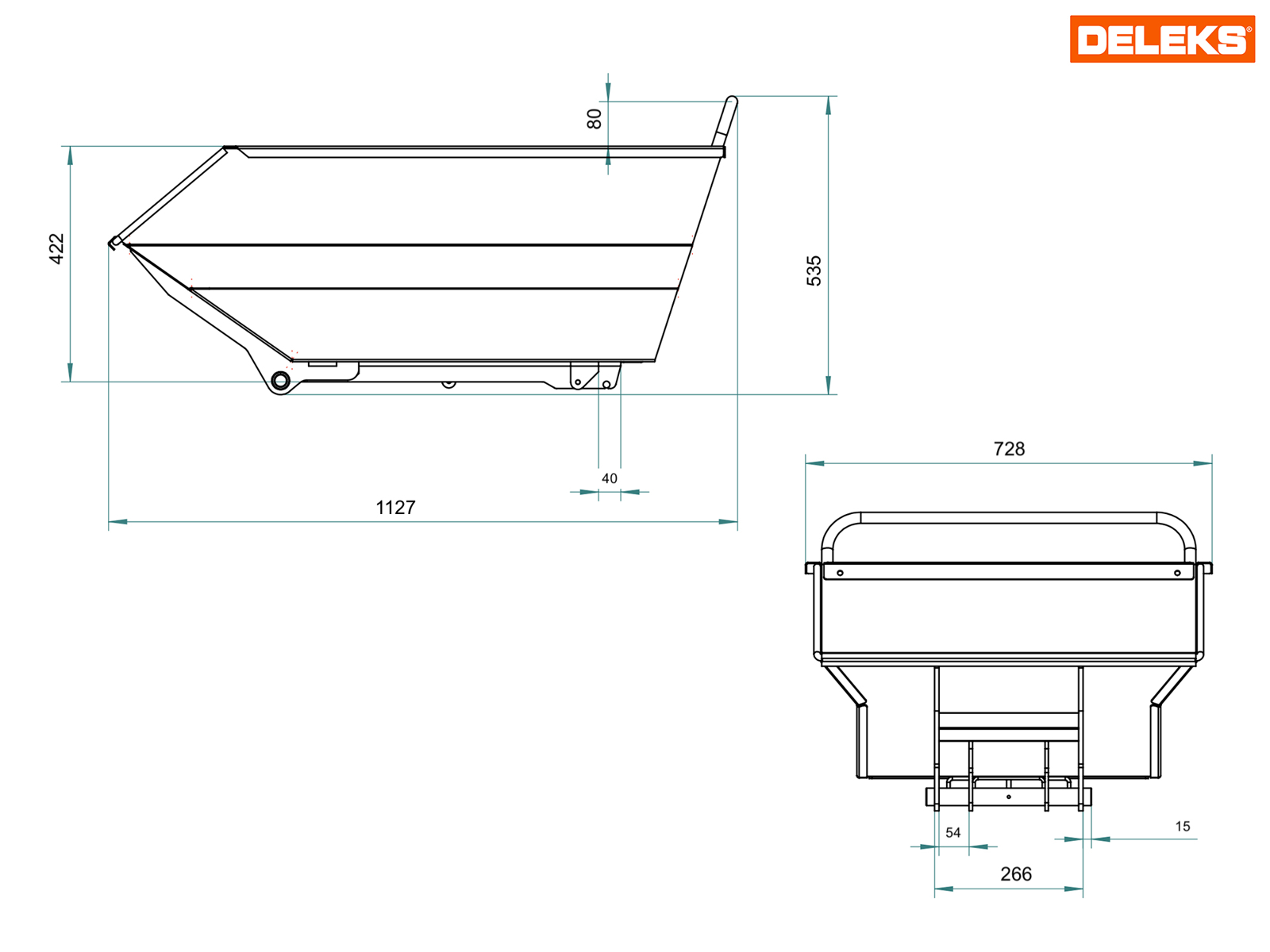A typical use is combined with a DELEKS® Mini Excavator, for transporting gravel, earth, mud, sand, building materials, etc…