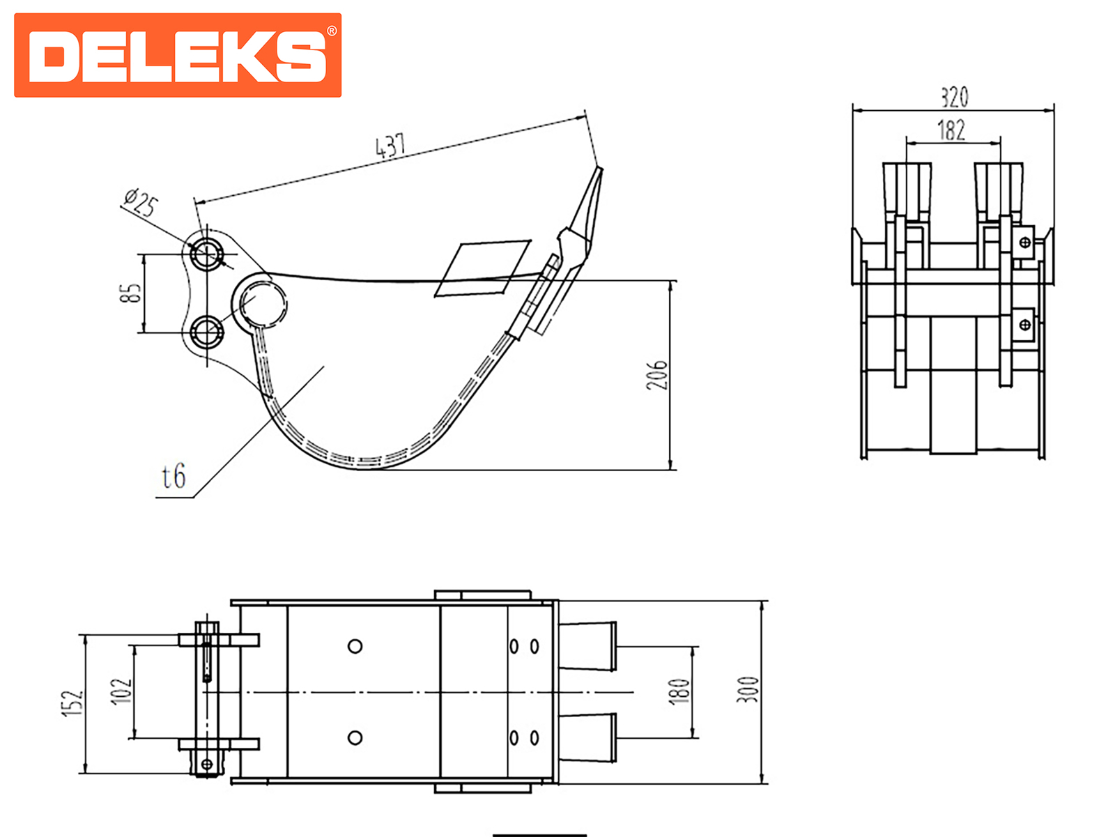 Bucket 30cm for DELEKS® S100/S120 and KUBOTA K008-3, U10-3, K008-5, U10-5 mini excavators.