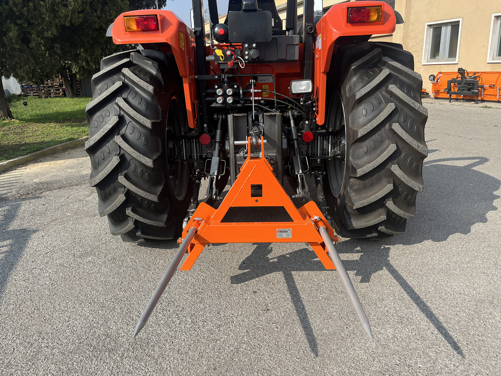 DELEKS® Garra agrícola para balas para tractor, 2 puntas para pacas de heno y paja redondas, Capacidad de levantamiento de 800kg.