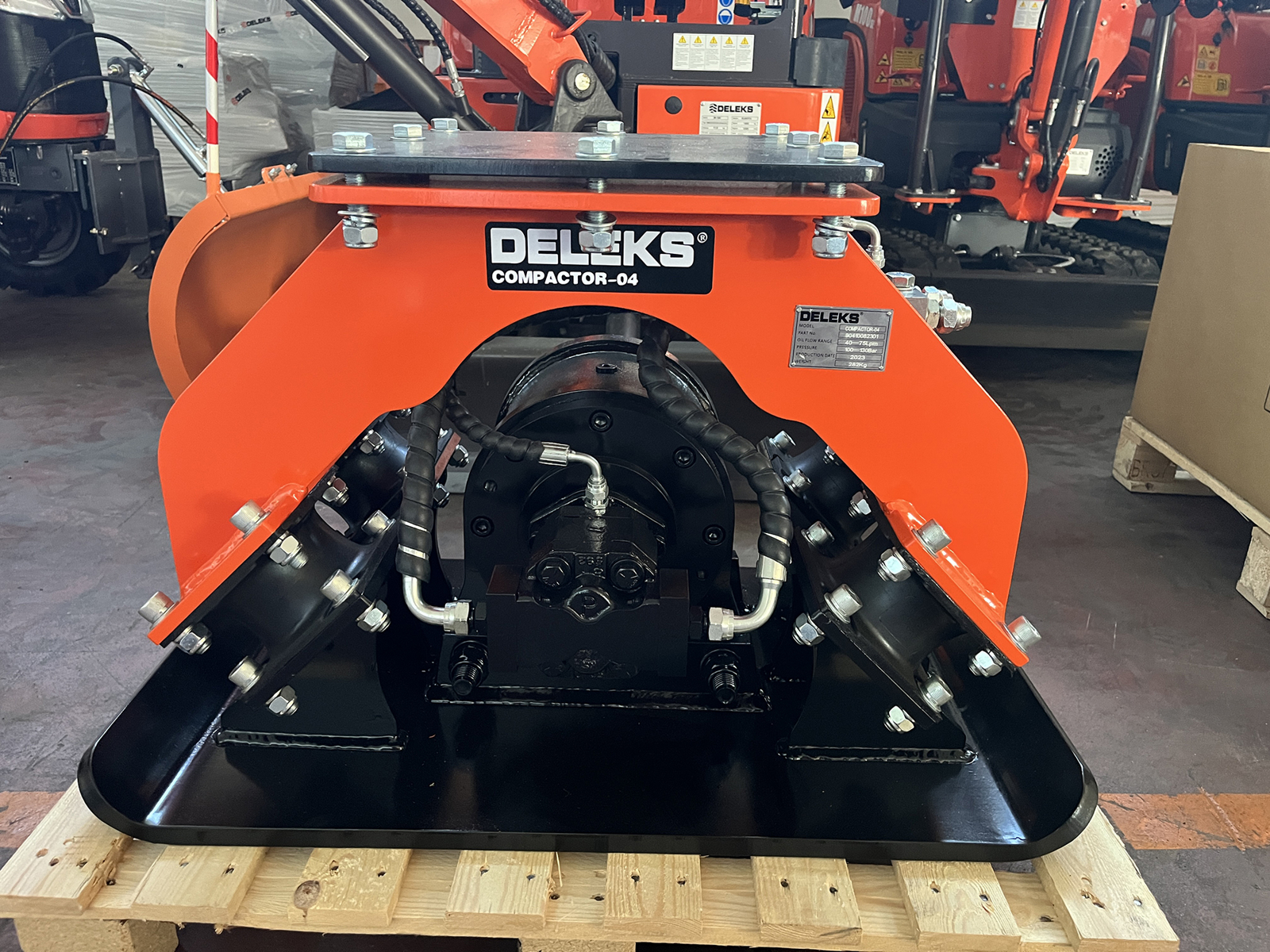 DELEKS® COMPACTOR-04 vibrating plate compactor. It is very easy to instal and easy to use, and it’s suitable for both a skidsteer or a mini excavator, from 4 t to 10 t.