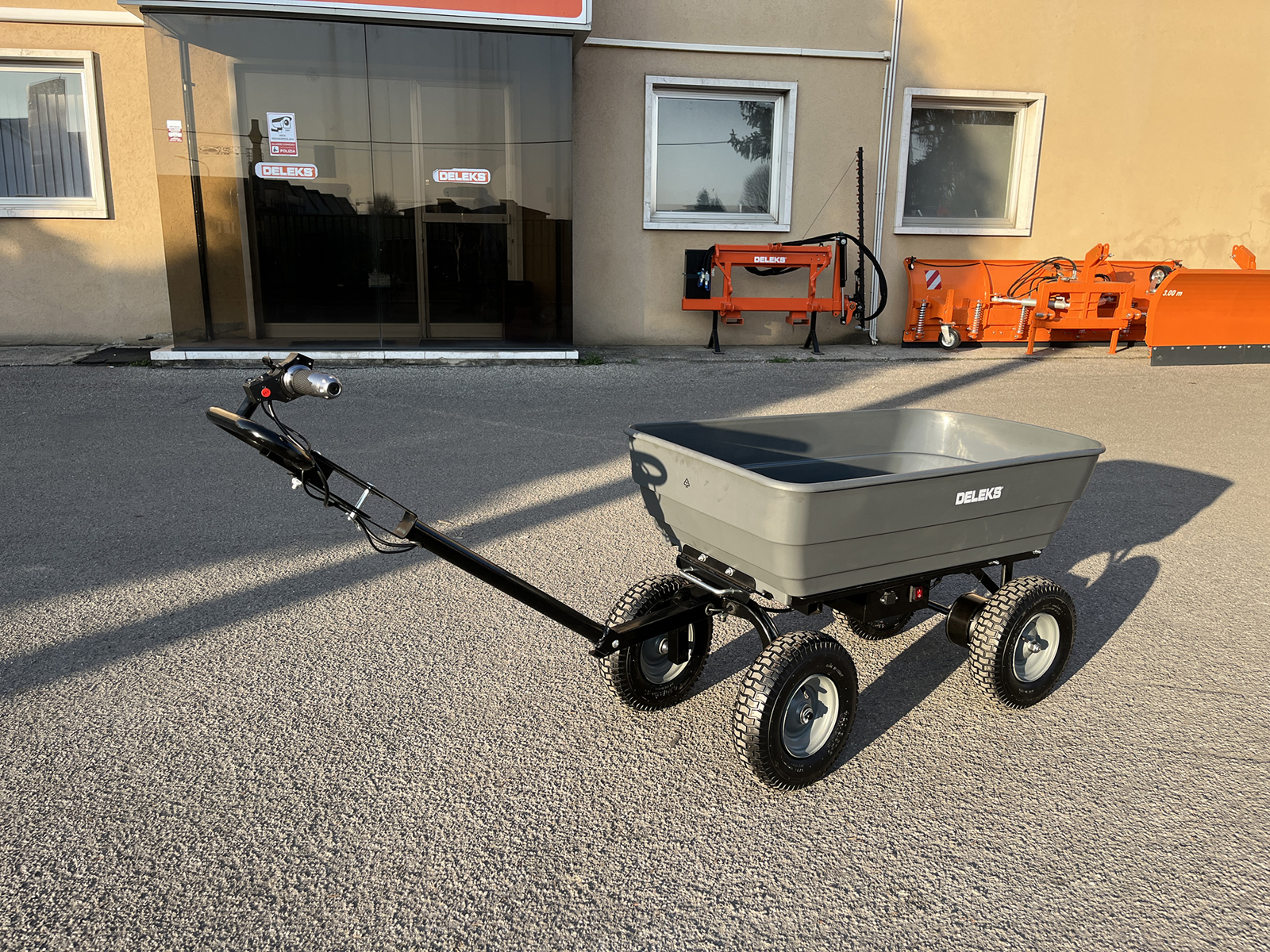 Carretilla eléctrica DELEKS® XE160, autonomía 8 horas, con volquete, carga 160 kg.