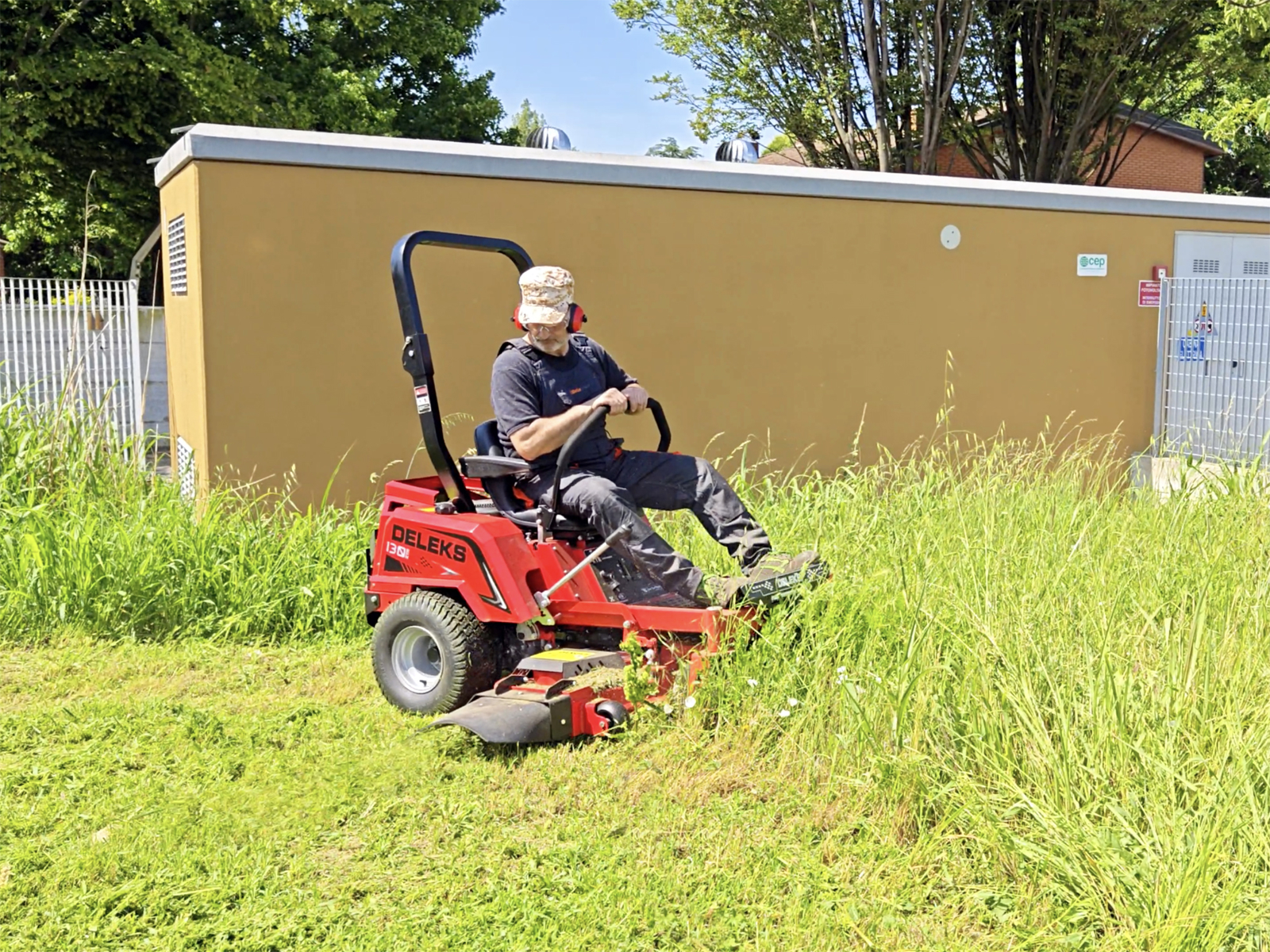 Tractor cortacésped profesional DELEKS® ZTR-130 con transmisión hidrostática, radio de giro cero, descarga lateral, motor bicilíndrico Loncin V-Twin LC-2V80 de 764 cc y 25 CV.