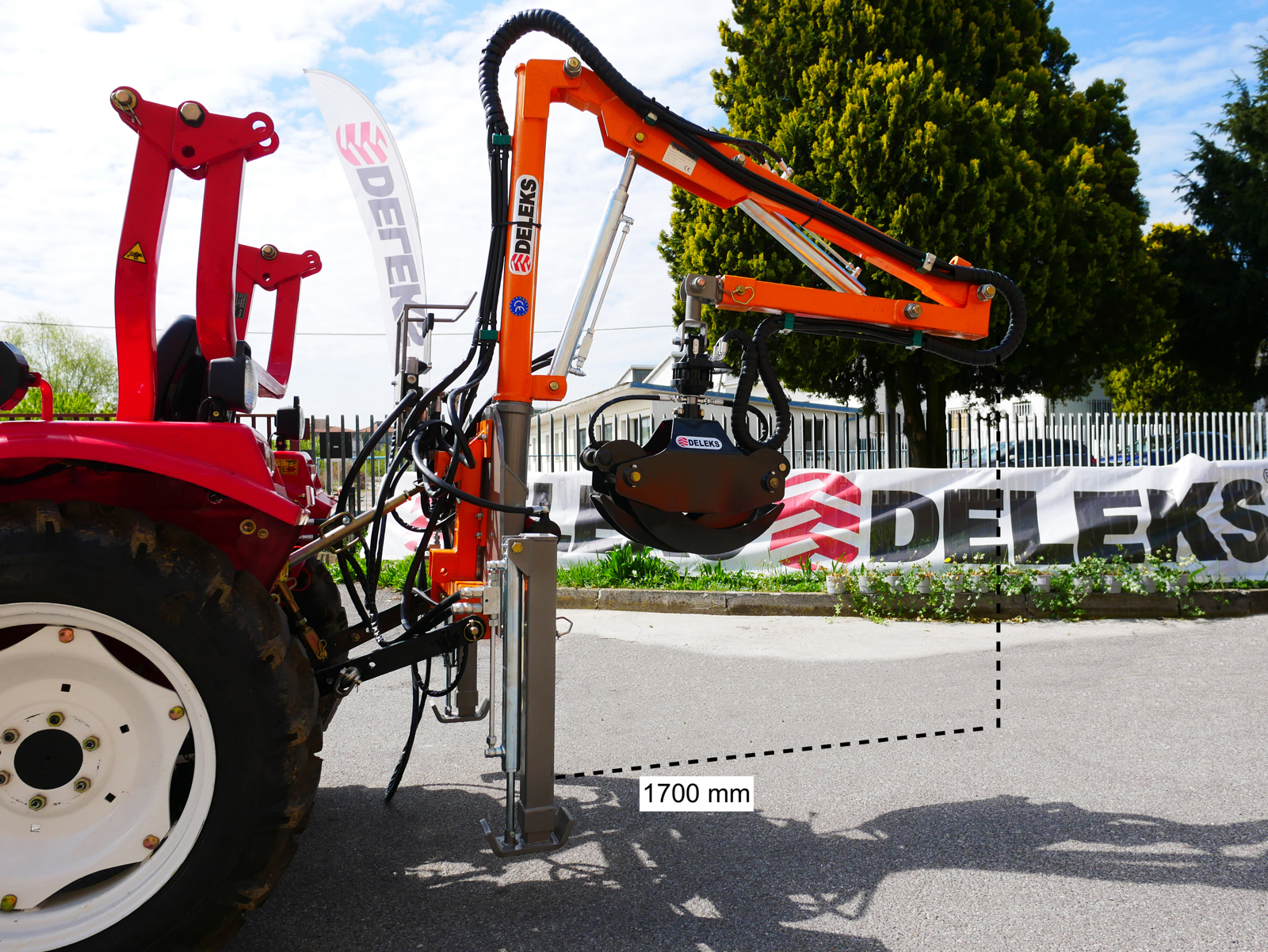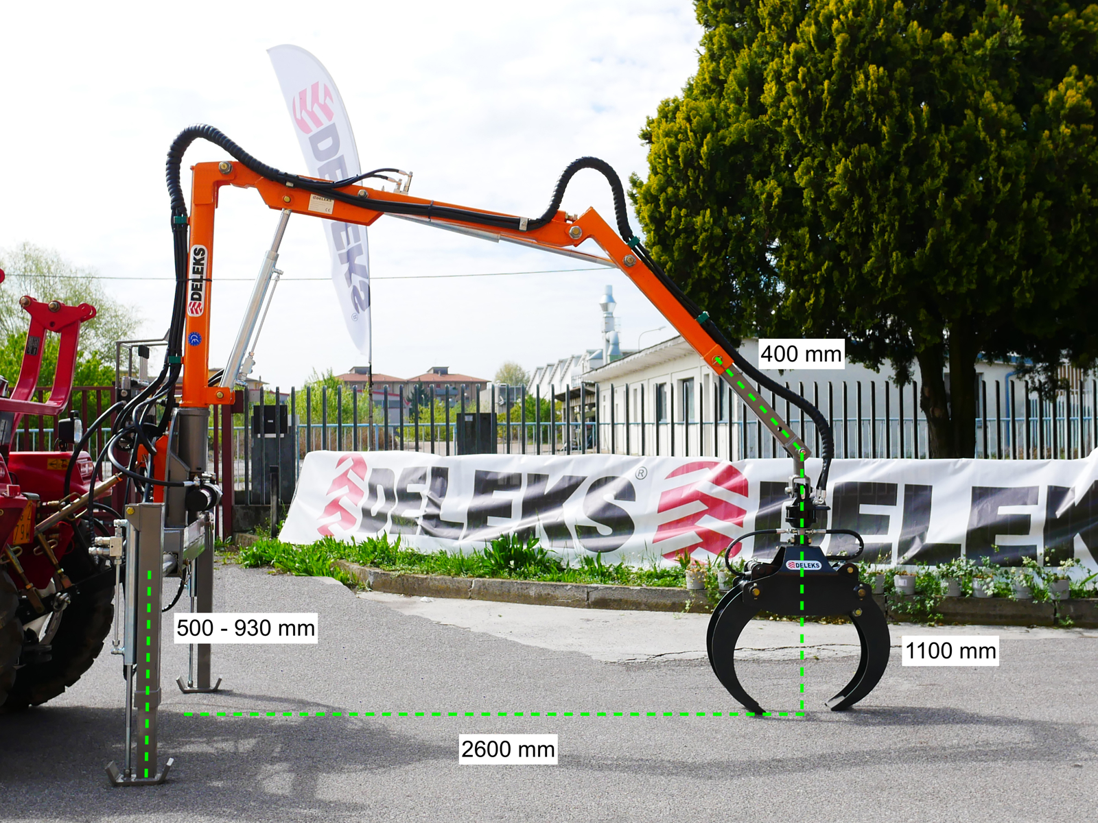 Grua forestal para tractores mínimo 30cv - DELEKS®- Partes hidráulicas fabricadas en Italia - Pinza DK10 con rotador Lombarda Ingranaggi GR10 1 tonelada.