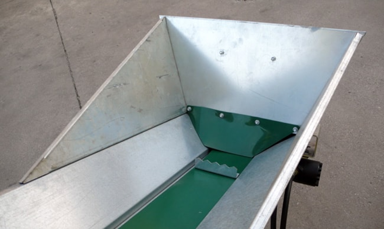 Cinta transportadora de madera hidráulica de 5,00 myros - DELEKS®– Estructura galvanizada, para evitar herrumbre.