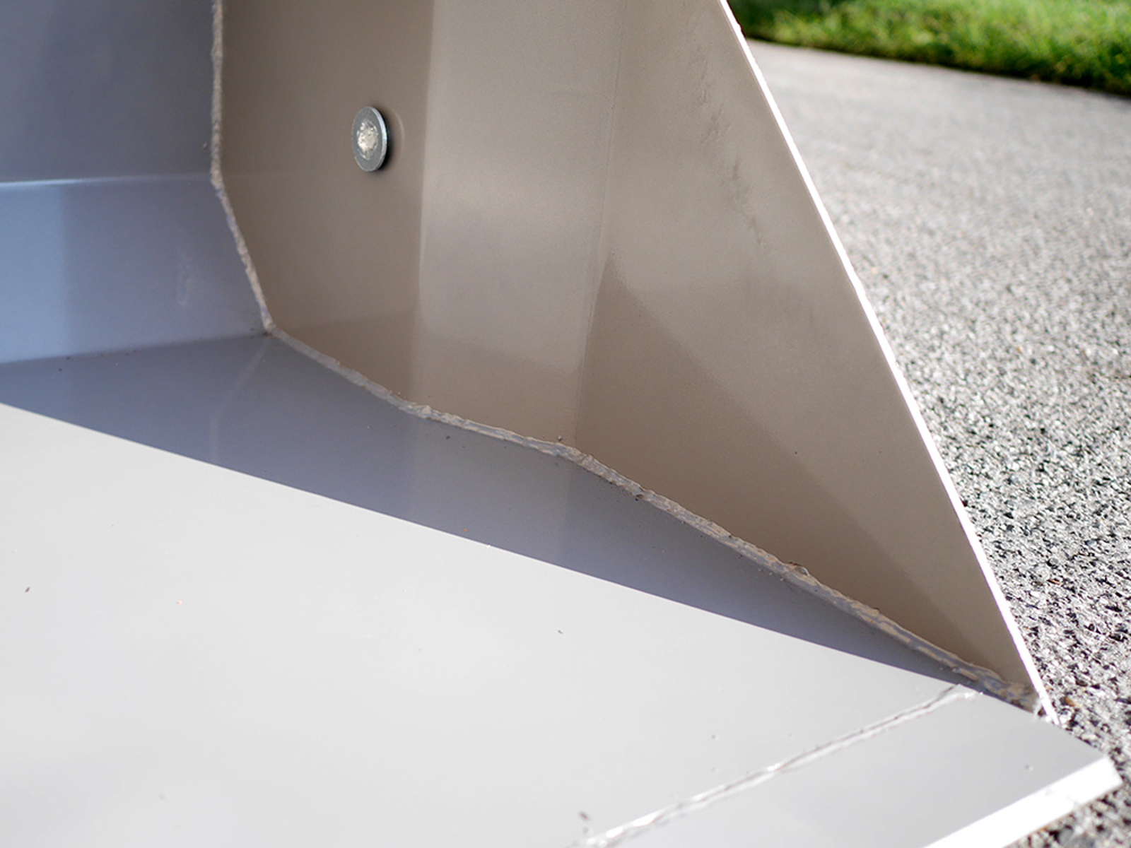 Hay un pasador de bisagra de seguridad para evitar una posible caída involuntaria de materiales.