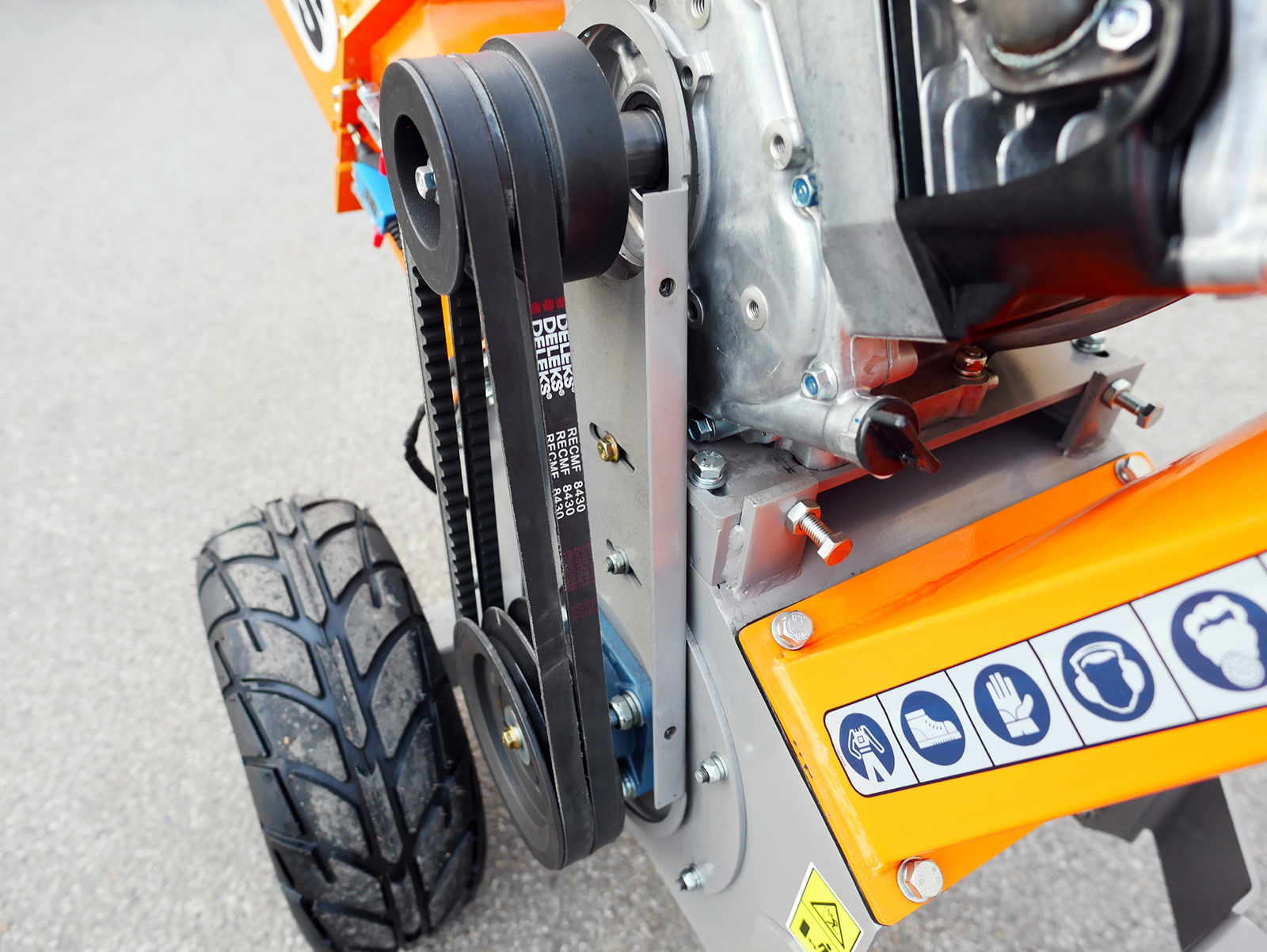 Trituradora de ramas / biotrituradora de tambor profesional DELEKS® DK-800 HONDA con motor de gasolina Honda GX390 de 13,5 CV y arranque eléctrico, diseñada para el triturado intensivo de madera seca y verde hasta 10 cm de diámetro.