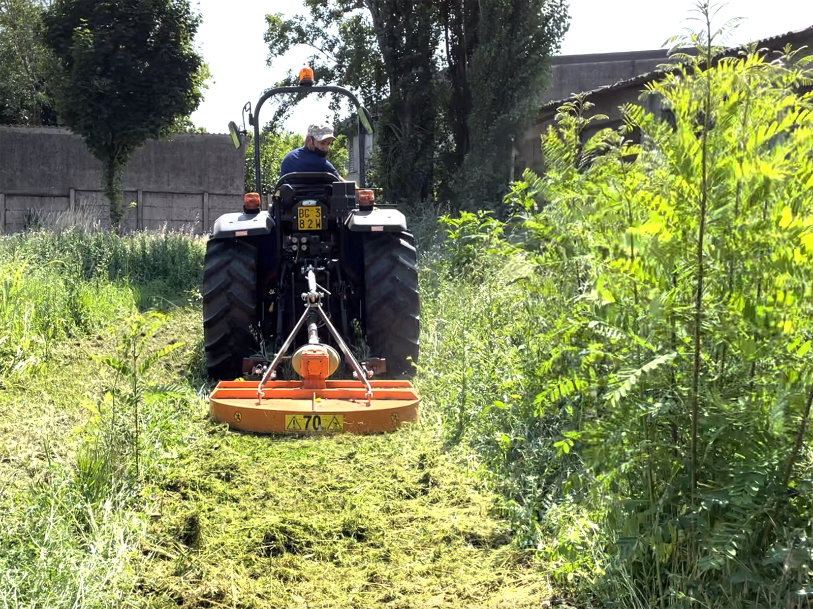 También uso reversible: invirtiendo el enganche 3 puntos y el multiplicador, es posible utilizarlo por delante del tractor.