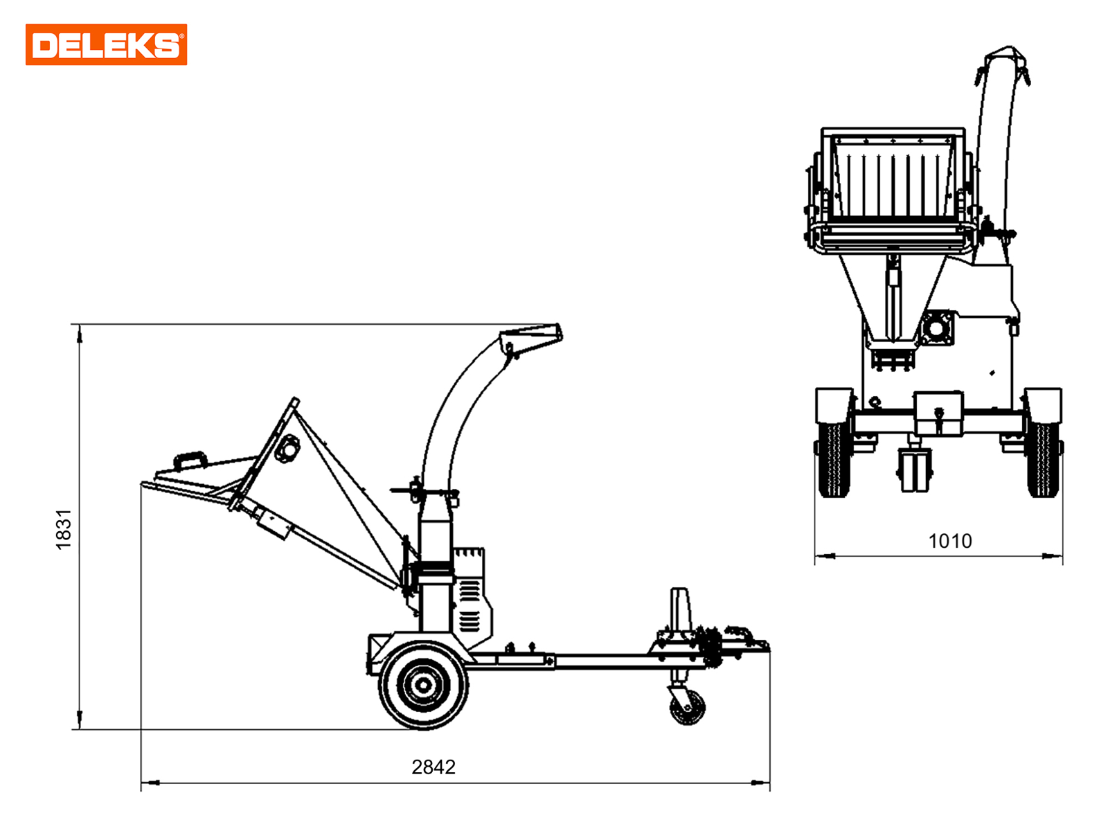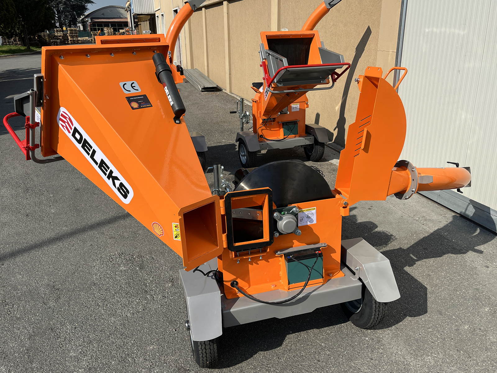 La DELEKS® DK-900 HONDA es una trituradora profesional con chasis y ruedas, desarrollada para trabajos exigentes y continuos en la gestión de grandes volúmenes de restos de poda y material leñoso.
