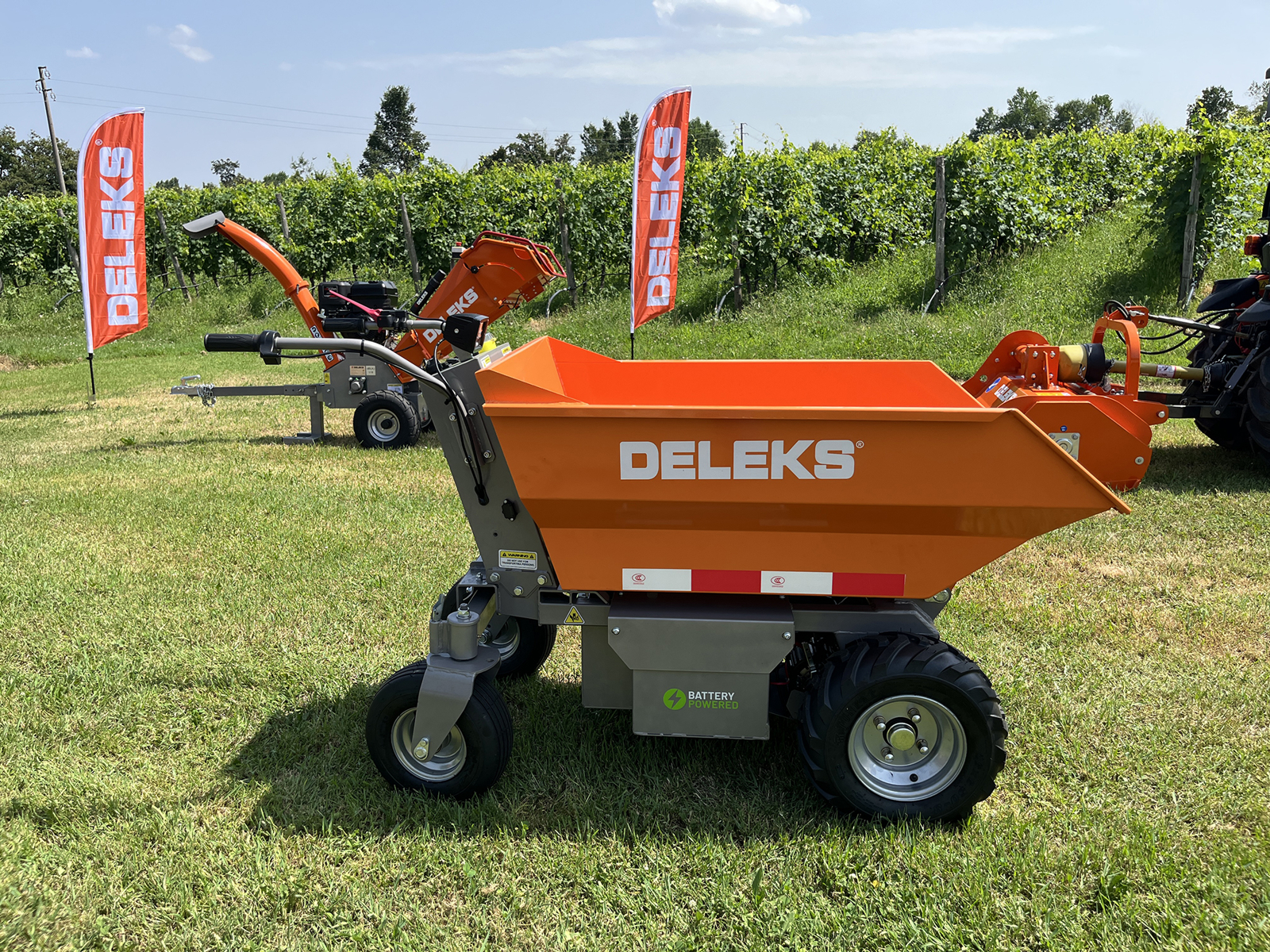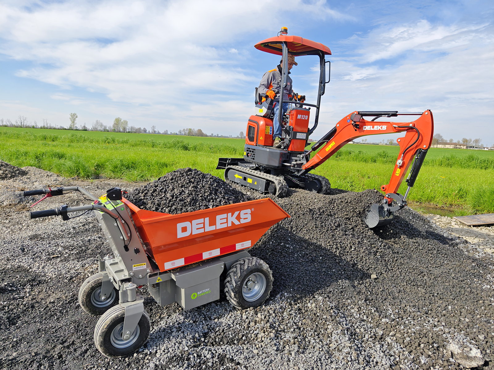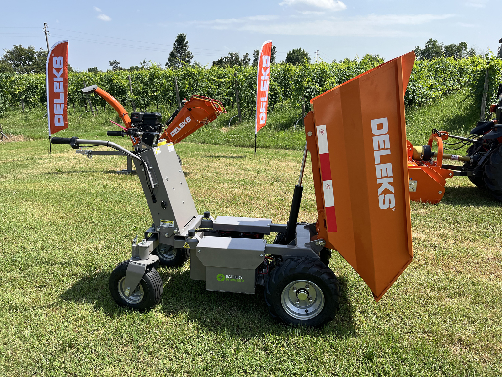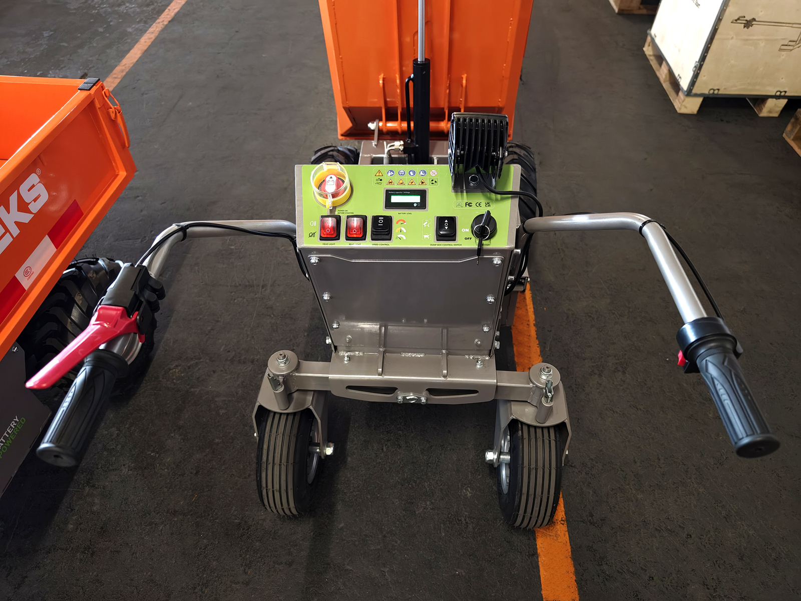Carretilla minidumper eléctrica DELEKS® XE-500He con motor eléctrico, volcamiento hidráulico, cuchara basculante, carga 500kg.