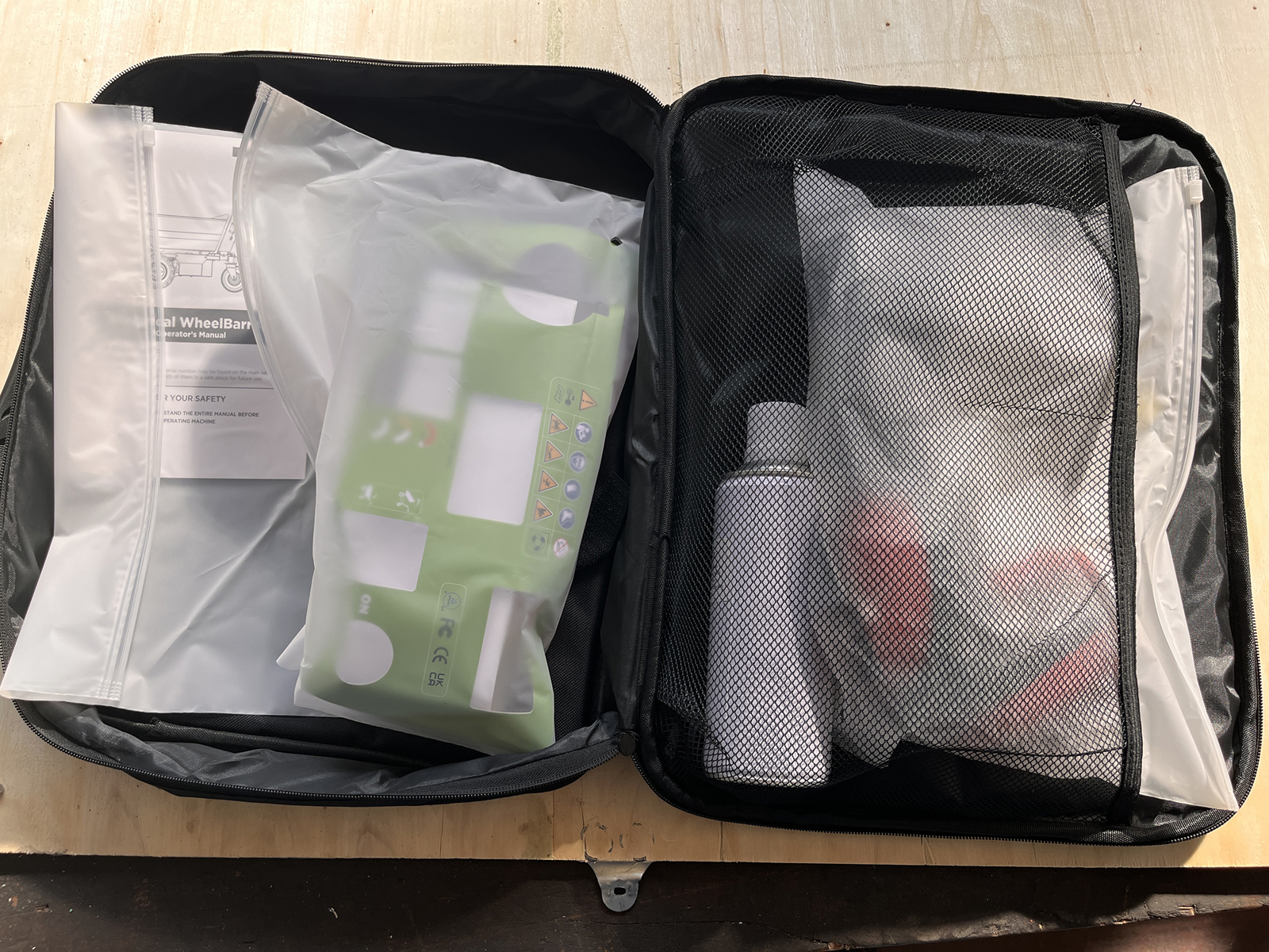 La carretilla eléctrica se entrega con 4 baterías de plomo-ácido 12V / 32Ah para una autonomía de aproximadamente 7 horas, dependiendo del tipo de uso. La carga se realiza conectando el cargador al enchufe estándar doméstico.