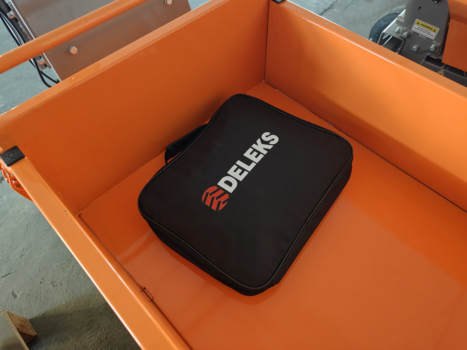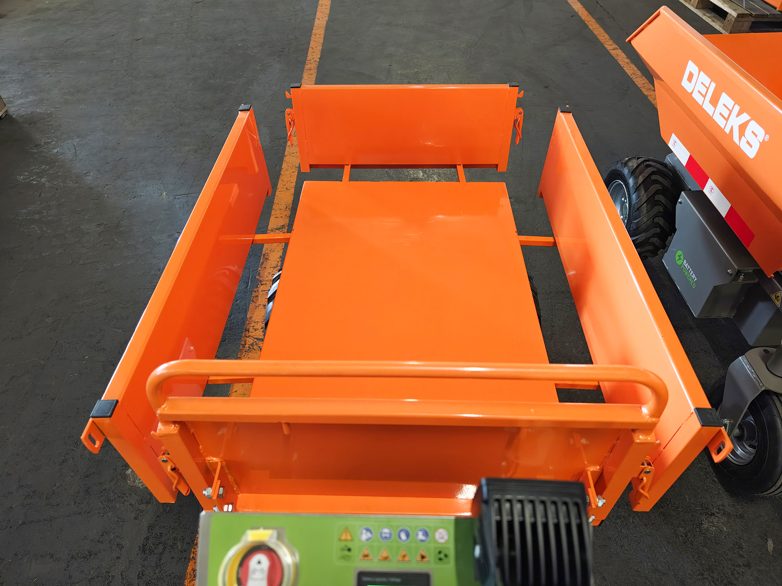Carretilla minidumper eléctrica DELEKS® XE-500Hf con motor eléctrico, volcamiento hidráulico, para ramas de madera, carga 500kg.