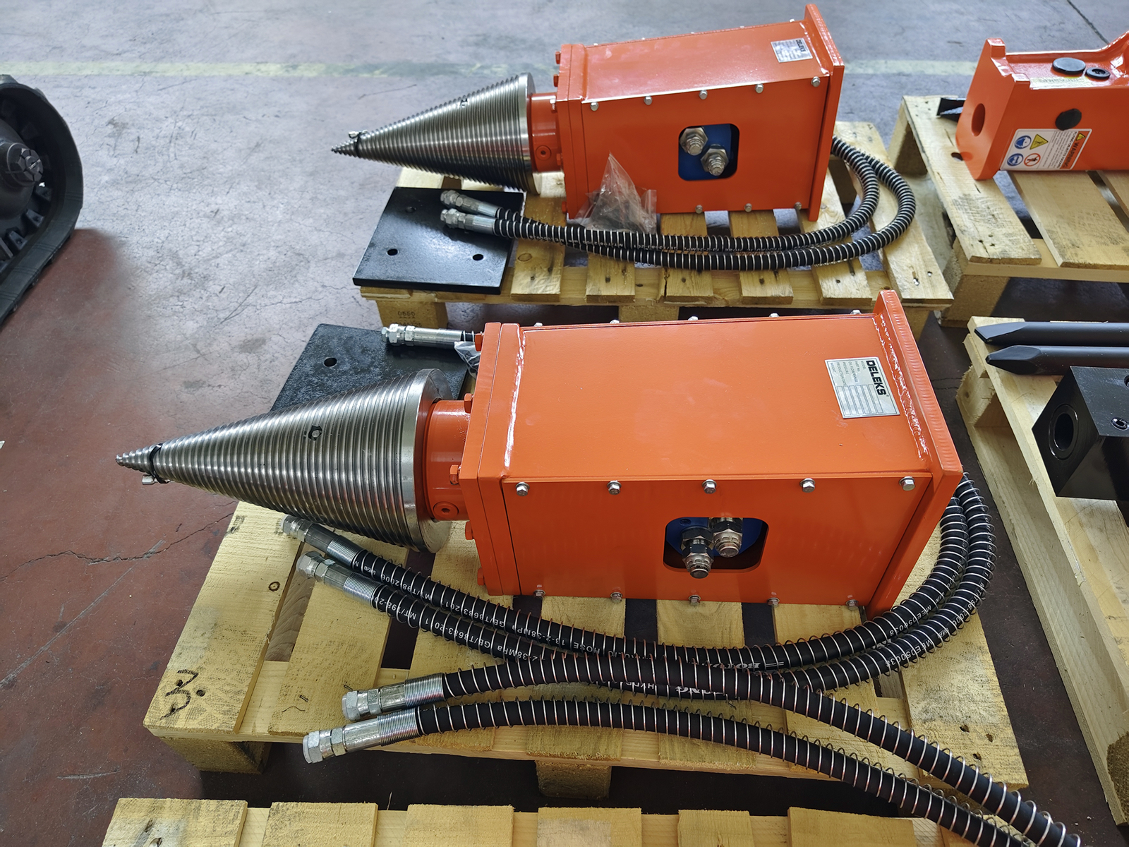 Astilladora, rajadora de cono impulsado para excavadoras - DELEKS® LSP-18 - acoplable a miniexcavadoras de 3 hasta 5 toneladas, para abrir madera por la mitad.