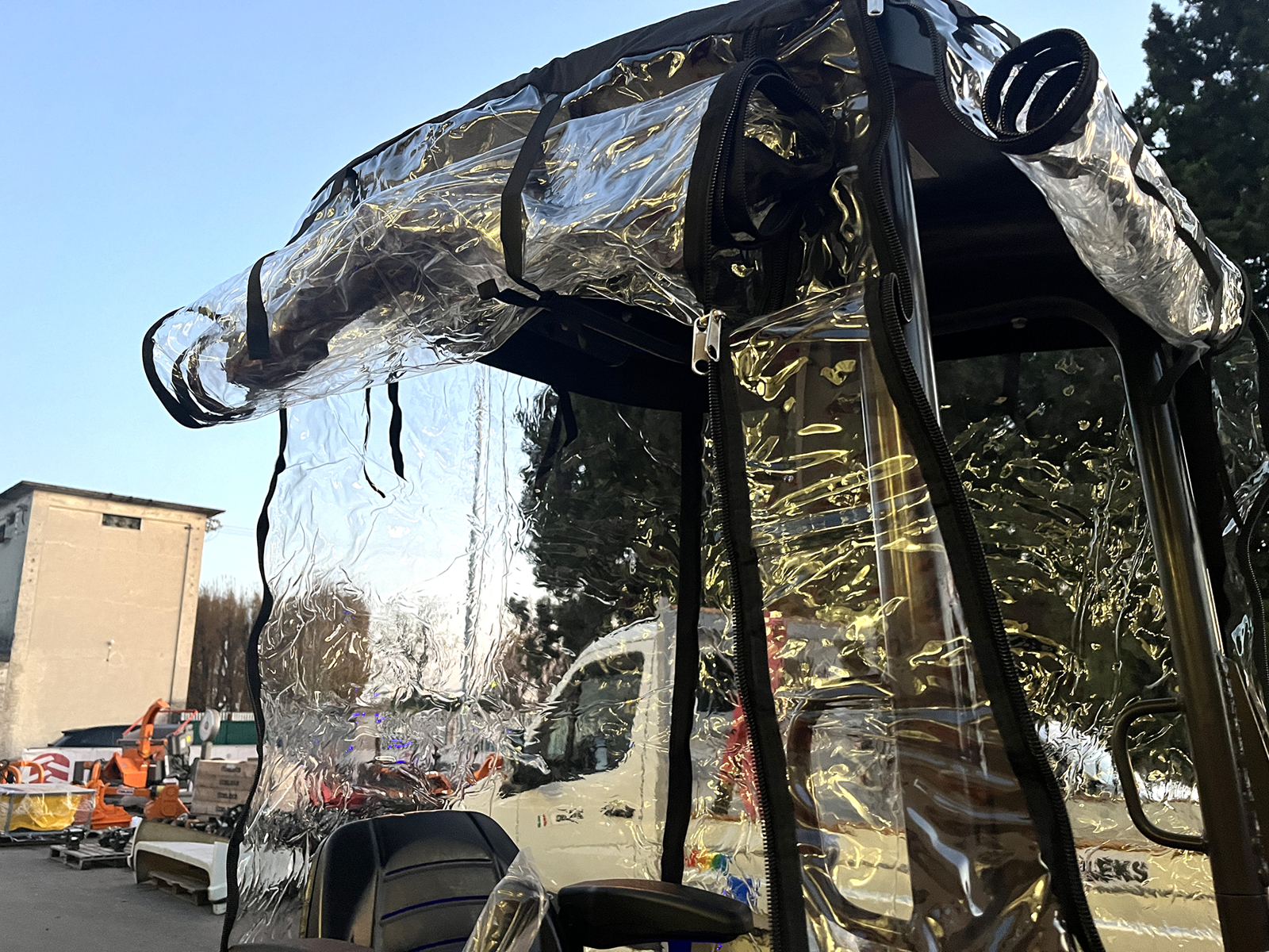 • Protección completa: La cubierta es totalmente impermeable y a prueba de viento, protegiendo al operador y los controles de la máquina.