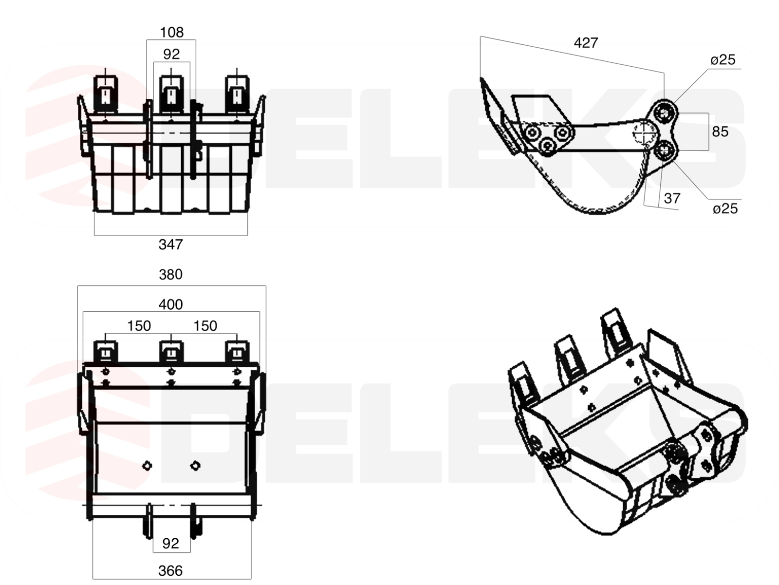 Cuchara para miniexcavadora M80/M90/M100/M120 - 38cm